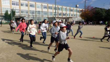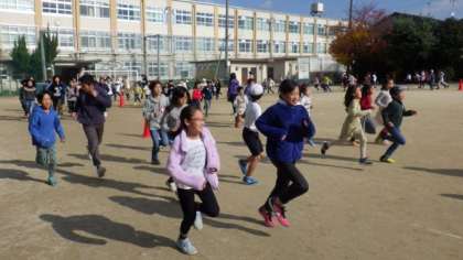 今日は4年生が社会見学へ行っていますので,4年生以外の学年で業間マラソンを行いました。
