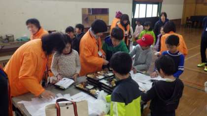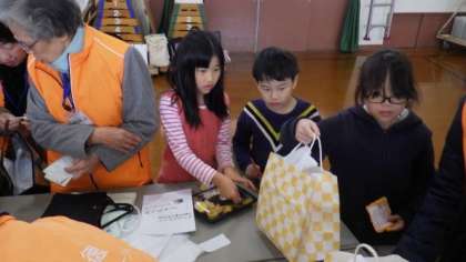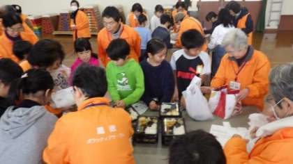 配食ボランティアサークルの皆様に教えていただきながら,グループごとにお弁当を袋に入れました。袋には,子どもたちがかいた手紙も一緒に入れました。
