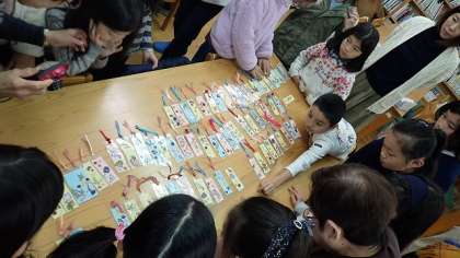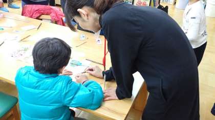 12月7日(土)に,鳳徳女性会とPTAによる「親子手作り教室」がありました。押し花の先生をお迎えし,しおりづくりに取り組みました。