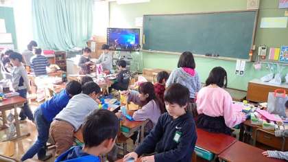 いろいろな工夫をしながら,1年生を招待して遊ぶための準備をしています。