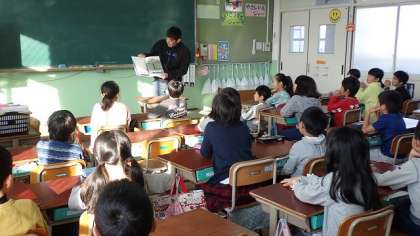 読書週間の取組の1つとして,朝のさわやかタイムに教職員による読み聞かせを行いました。自分のクラスの担任ではない先生からの読み聞かせであったので,新鮮な気持ちで聞くことができたようです。どんな話を誰に読んでもらったのか,ご家庭でも話題にしてください。