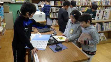 今日の昼休みは小雨が降っていたので,学校図書館で過ごす子どもたちも多かったです。冬休み中に借りる本を選んでいる子どもたちもいました。