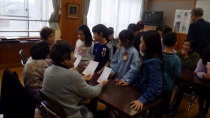 自分たちでつくった福笑いも,一緒に楽しみました。