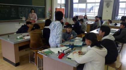 身の回りの電気の性質や働きを利用した道具について,話し合っています。