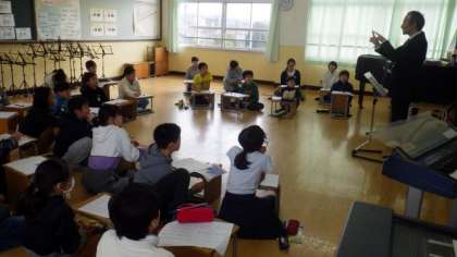 「スキーの歌」を聴いて,「スキーの歌」の旋律の音の動きやリズムの特徴について考えています。