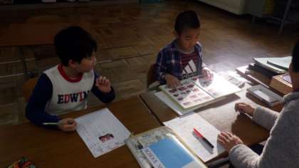 漢字の学習をしたり,車について図鑑で確かめたりしています。