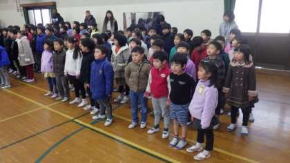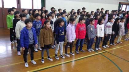 次に,1・2年生,3・4年生,5・6年生でそれぞれ合唱を発表し合いました。