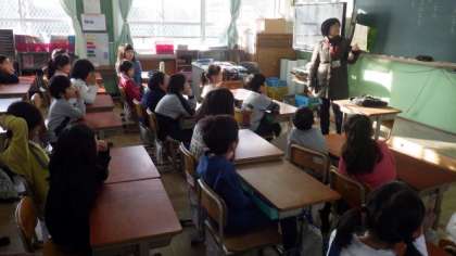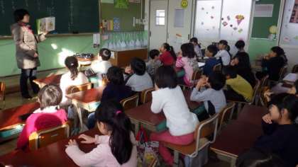 図書ボランティアの皆様が2年生の教室で読み聞かせをしてくださいました。楽しいお話と絵本のイラストに,笑い声も聞こえました。
