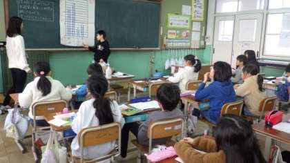 3年生は算数「表とグラフ」で,棒グラフを読み取る学習をしています。6年生は外国語活動で,`My Best Memory'のチャンツを練習しています。