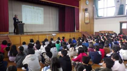 2月の朝会を行いました。校長先生からは,「お話を絵にするコンクール」学校賞をいただいた話や,トイレのスリッパや落ちているごみなど,次に使う人のことを考えた行動をすることの大切さなどについての話がありました。