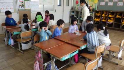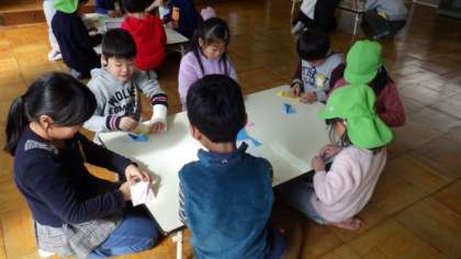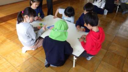 のごみ保育園の皆さんが来校し,1年生と交流しました。歌を発表したり,グループですごろくなどをして遊んだりしました。