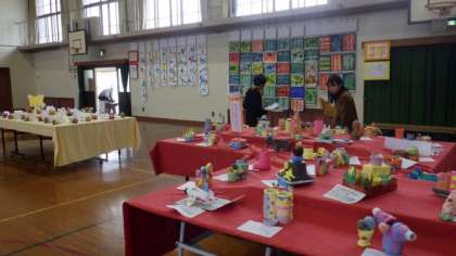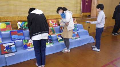 今日から20日(金)午前11時35分まで,本校体育館で校内作品展をしています。子ども達も学級・学年ごとに鑑賞しています。