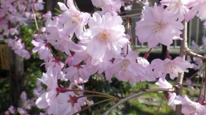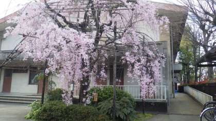 土曜日日曜日で,正門前のしだれ桜が満開になりました。入学式まで花がもつことを願っています。