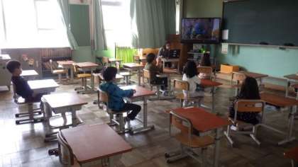 特例預かりで学校に来ている子どもたちは,自主学習をしたり,映像教材を見たり,カルタをしたりして過ごしています。