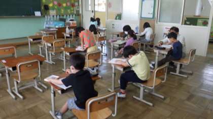 特例預かりで学校に来ている子どもたちは,自主学習や読書,折り紙,ぬり絵などをして過ごしています。