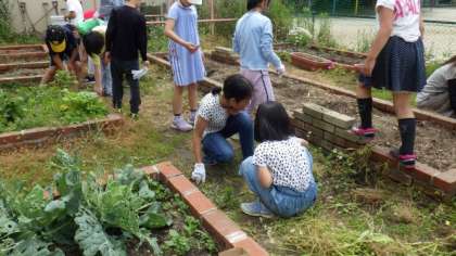教職員で,校内の学習園や給食室などの周りの草ひきや,木の剪定などをしました。学習園の草ひきを手伝ってくれた児童のみなさん,ありがとうございました。