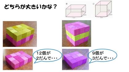 自分ですすめる『学びの一歩』第1弾(だん)の中に算数の体積の学習がありました。少し,復習しましょう。