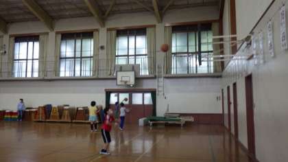 特例預かりで学校に来ている子どもたちは,学習や読書などをして過ごしています。今日は雨で運動場が使えないので,学習の合間に体育館で遊びました。