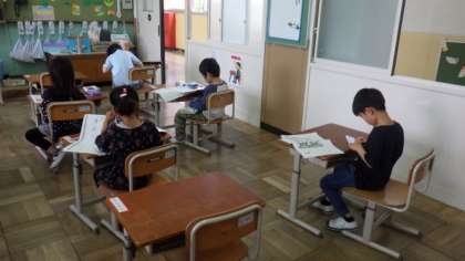 特例預かりで学校に来ている子どもたちは,自主学習や読書,折り紙,ぬり絵などをして過ごしています。