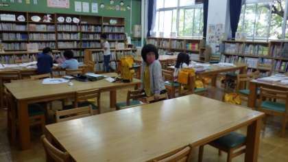 学習相談日の後,運動場で遊ぶ子どもたちもいました。また,教室で学習相談日を行うため,今日の特例預かりは,学校図書館とふれあいサロンで行いました。