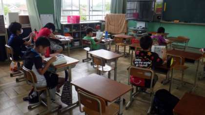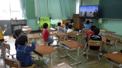 特例預かりで学校に来ている子どもたちは,自主学習や読書,映像教材をみるなどして過ごしています。合間には外で遊んでいる子どもたちもたくさんいました。