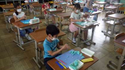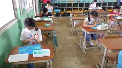 住んでみたい町を想像しながら,粘土で住んでみたい町にあるものを楽しく作っています。