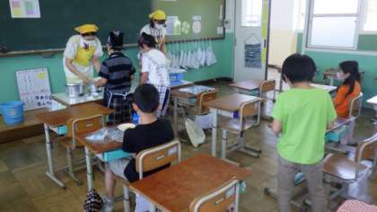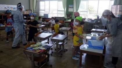 久しぶりの給食に,「おいしい。」とうれしそうに食べている子どもたちがたくさんいました。