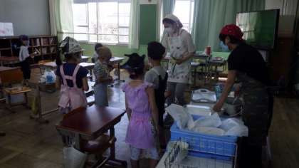 当面の間は,サービスホールの密を避けるために,各学年で時間差をつくって給食をとりに行きます。これまでと少し違う配膳の仕方でしたが,みんな手際よく配膳していました。