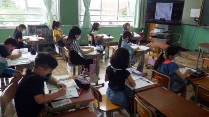 社会では,京都府の様子について調べています。算数では,折れ線グラフの学習をしています。