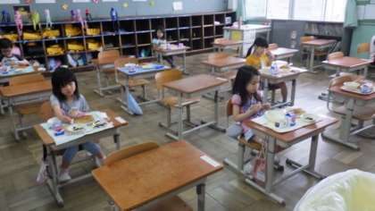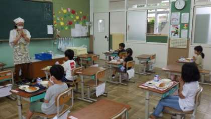 A班は2回目の給食となりました。手洗いや配膳の手際も良くなっています。