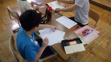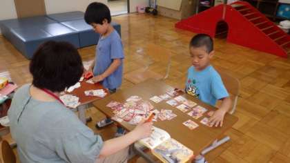 かるたでひらがなの学習をしたり,ワークシートを使ったりしています。