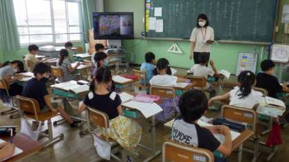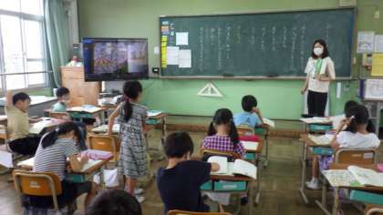 「迷子のお知らせ」の音声を聞いて,どんなメモをとったか話し合っています。