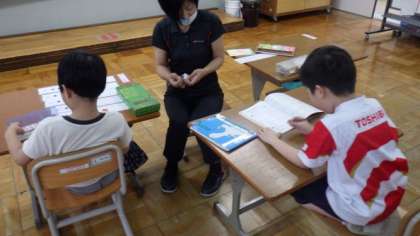 国語や算数の学習をしています。