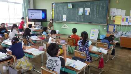 「金のおの」のお話から,正直に言うことができた時どんな気持ちになるか,発表しています。