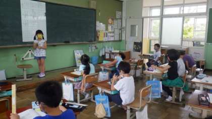 2年生は算数のいろいろな計算の筆算の練習で,答え合わせをしています。4年生は国語で,季節の言葉について学習しています。6年生は図画工作「アミアミアミーゴ」の作品作りを進めています。