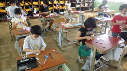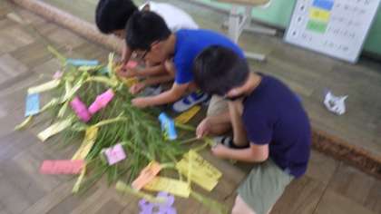 七夕のかざりをつくったり,ねがいごとを書いたりしています。