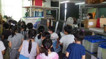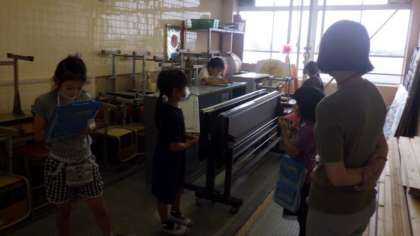 1年生に鳳徳小学校のことを紹介するために,校内にどんな場所があるか確かめています。今日は特別教室や教材室などを調べて,メモをとりました。
