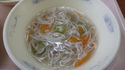 七夕は,年に一度だけ「おりひめ」と「ひこぼし」が天の川で出会う日と言われています。給食の「七夕そうめん」は,天の川に見立てた「そうめん」と,星に見立てた「オクラ」を入れて作りました。