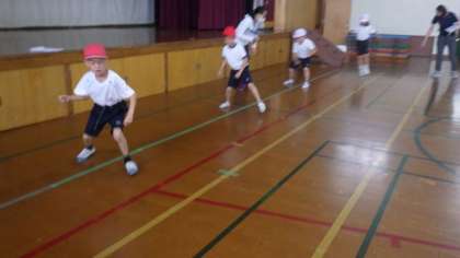 雨天のため,今日は体育館で行う種目のみを実施しました。2年生は,反復横とび・立ち幅とびを行いました。