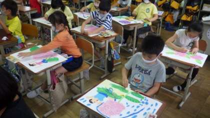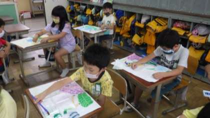 14日(火)3年図画工作「あじさい」