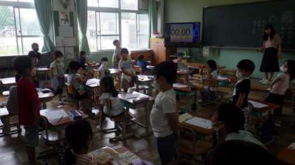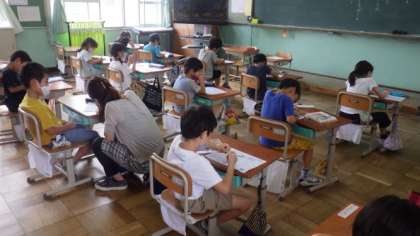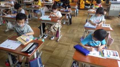 ワークシートを使って,ひらがなの学習をしています。今日は,「ぬ」の学習をしました。「ぬ」のつく言葉をたくさん発表していました。