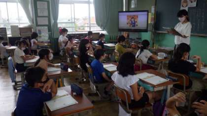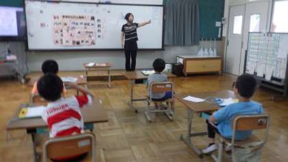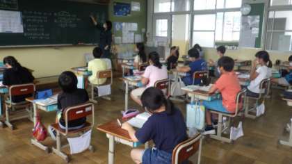 3組は「学校たんけん」の準備をしています。4年生は道徳で,「さち子のえがお」という話を通して,正しく行動することについて考えています。5年生は算数で,小数のかけ算の学習をしています。