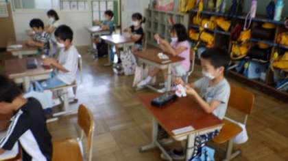 計算カードを使って,たし算のくり返し練習をしています。時間内にたくさん計算できるように練習しています。