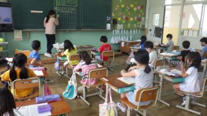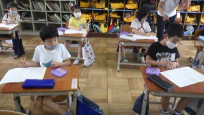たし算の式に表し,ノートに計算の仕方を言葉で書いています。