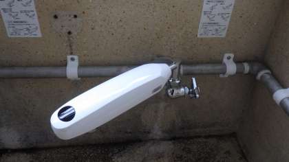 感染症対策として,学校図書館の貸出返却カウンターに透明の仕切り板を設置しました。また,一部の水道にセンサー式の蛇口を設置しました。