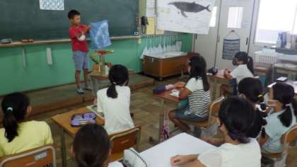 夏休みにがんばった自由研究や作品を友達に紹介しました。