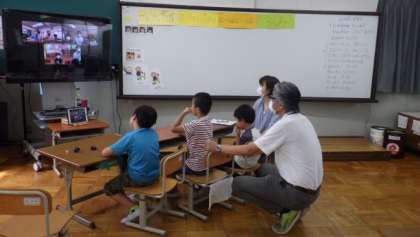 実際に会えないのは残念ですが,画面を通して他校の子どもたちとやりとりをするのが,とても嬉しかったようです。