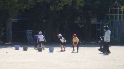 アイデア走の練習をしました。「けんけんぱ」やボールを足にはさんでジャンプなど,前回よりも上手になっています。