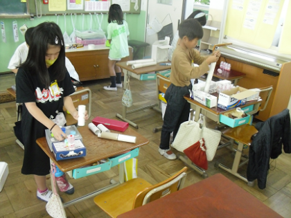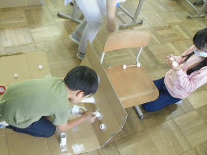 みんなで遊びを楽しむことができるような工夫をしながら,おもちゃを作っています。