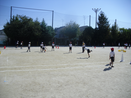 ルールに慣れ,チームで協力や工夫をしながら,パスをつなごうとがんばっています。